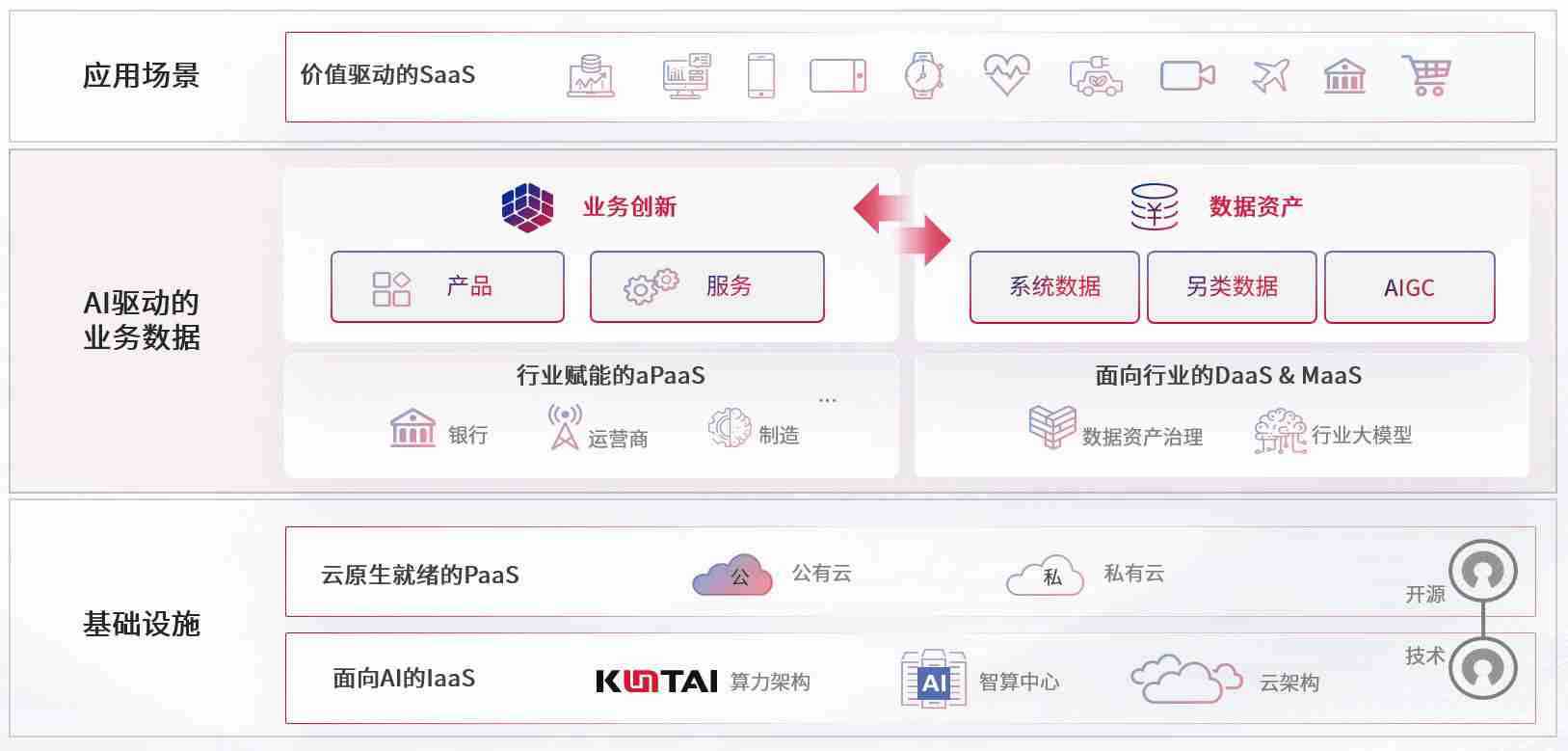 数字时代,,围绕企业数字化转型的关键要素,,,,j9国际站备用数码开创性的提出数云融合战略和技术体系框架,,,着力在云原生、、、、数字原生、、、、AI原生和信创产业上架构产品和服务能力,,,为处在不同数字化转型阶段的快消零售、、、、汽车、、、、金融、、医疗、、政企、、、、教育、、运营商等行业客户提供泛在的敏捷IT能力和融合的数据驱动能力,,,,构建跨界融合创新的数字业务场景和新业务模式,,,助力企业级客户建立面向未来的核心能力和竞争优势,,全面推动社会的数字化、、、智能化转型升级。。。。